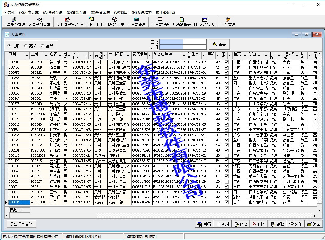 1.人事资料部份:自动从A帐导入,可隐藏未成年人员.